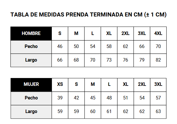 - En caso de duda entre tallas recomendamos elegir la más grande.
